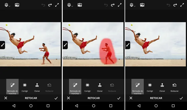 O Adobe Photoshop Fix é um dos melhores aplicativos gratuitos para remover objetos e pessoas indesejadas de suas fotos. O aplicativo é muito fácil de usar, basta adicionar a foto, abrir o menu “Retocar” e usar a ferramenta “Remoção de manchas” para remover os itens indesejados da foto.
