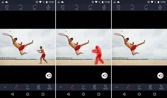 Wipe Out é outro aplicativo gratuito para Android especializado na remoção de objetos e pessoas de fotos. Para remover objetos e pessoas de fotos, basta adicionar a foto que deseja editar e usar a ferramenta pincel ou laço em “Remoção de objetos”, para selecionar e remover o objeto da foto.