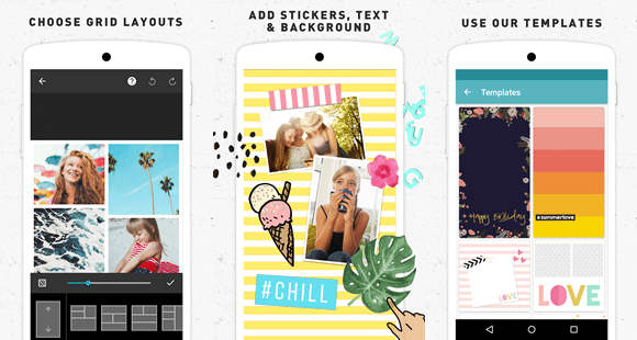 PhotoGrid é um aplicativo gratuito para Android que oferece uma forma simples e rápida de você fazer colagens com as fotos do seu smartphone ou tablet Android. Ele permite que você escolha entre vários modelos de colagens diferentes, adicione textos, aplique filtros e crie slides de fotos.