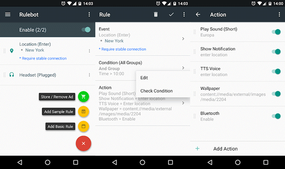O RuleBot é um aplicativo gratuito para Android que lhe permite automatizar o celular definindo suas próprias regras. Ele permite que você crie regras para automatizar tarefas com 3 componentes. São eles os eventos (mais de 30 eventos), condições (mais de 30 condições), ações (mais de 40 ações).