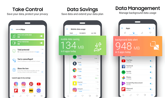 Samsung Max é um aplicativo gratuito para Android que lhe permite economizar dados através da compactação de dados e do bloqueio de determinados aplicativos a internet. Oficialmente, ele está disponível no Google Play apenas para telefones Samsung, mas você pode baixar seu arquivo APK.