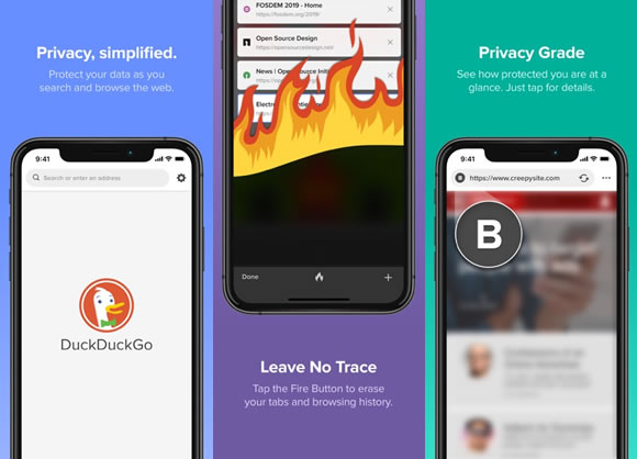DuckDuckGo é outro excelente navegador que você pode usar para navegar com mais privacidade na internet. Assim como o Firefox Focus ele não salva o seu histórico de navegação e impede que os rastreadores sigam a sua navegação. Ele possui também uma classificação de privacidade dos sites.