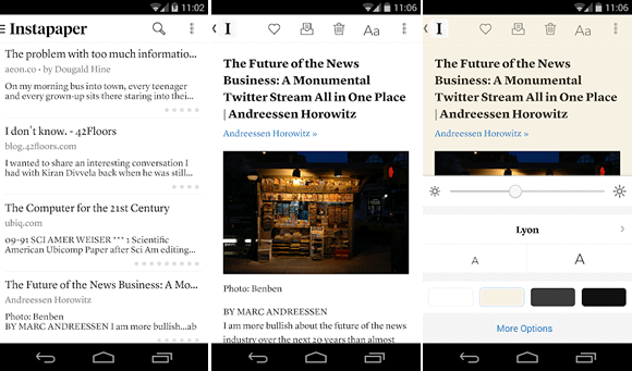O Instapaper é outro popular aplicativo para Android que você pode usar para salvar páginas da web para ler mais tarde. Assim como o Pocket, ele oferece sincronização, salva as páginas para você ler em offline sem conexão com a internet, possui modo de leitura livre de distrações e assim por diante.