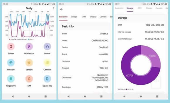 O Testy é outro excelente aplicativo gratuito para Android que você pode usar para testar as funções do seu smartphone. Com ele você pode testar componentes do seu smartphone para detectar pixels mortos na tela, touch, multi touch, rede, sensores, câmera, leitor de impressão digital e o cartão SIM.