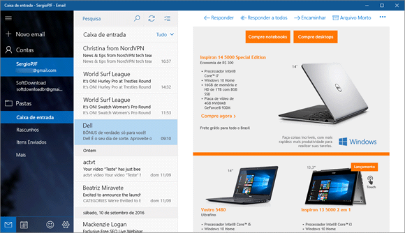 O aplicativo Email e Calendário da Microsoft, instalado por padrão no Windows 10, é uma ótima alternativa ao Outlook Express e Windows Live Mail. Ele possui uma interface moderna, suporta vários serviços de e-mail, como Gmail, Outlook e Yahoo, exibe notificações de novos e-mails, etc.