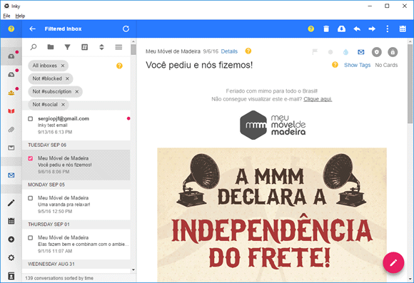 O Inky é um cliente de email disponível em versão gratuita para Windows que oferece uma forma simples de você adicionar as contas de e-mail. Tudo o que você precisa fazer é adicionar o nome de seu usuário e senha do Gmail, iCloud ou Outlook.com que o Inky cuida do restante para você.