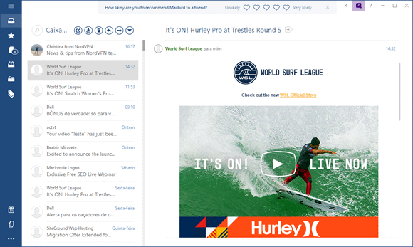 O MailBird é outro programa que você pode usar como cliente de e-mail no WIndows. Embora a versão gratuita possua algumas restrições, como permitir gerenciar somente uma conta de email, o programa oferece integração com vários serviços de email, notificações de emails e muito mais.