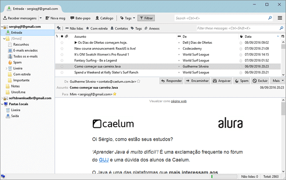 Embora a maioria das pessoas acessem sua conta de email pelo navegador, um cliente de email tem vários benefícios, como ler as mensagens em offline e receber notificações de novos emails.