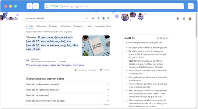 O ChatGPT for Google é uma extensão para Google Chrome que exibe a resposta do ChatGPT para sua pesquisa ao lado dos resultados do mecanismo de pesquisa. Ela mostra a resposta do ChatGPT ao lado de resultados de pesquisa do Google, Bing, DuckDuckGo e outros mecanismos de pesquisa.