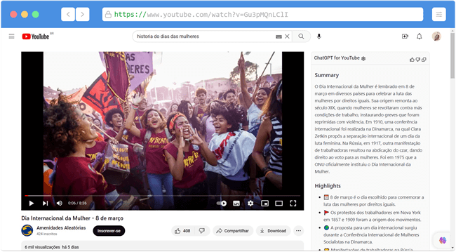 O ChatGPT for Youtube é uma extensão para Google Chrome que usa a poderosa IA do ChatGPT para resumir rapidamente os pontos-chave de vídeos do Youtube. Tudo o que você precisa fazer é abrir um vídeo do Youtube e após alguns segundos, ele exibirá um resumo do lado direito do vídeo.