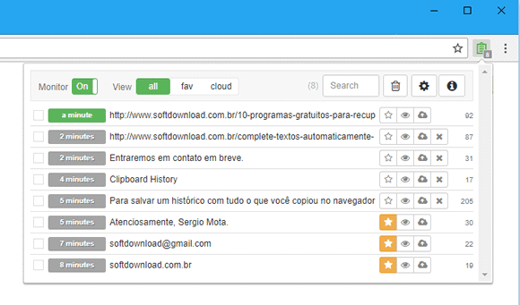 Clipboard Helper é mais uma extensão para Google Chrome que mantém um histórico de tudo o que você copia para que você possa reutilizar mais tarde. O seu funcionamento é muito simples, sempre que você copia um texto, ele é salvo e, clicando no ícone da extensão, você tem acesso ao histórico.