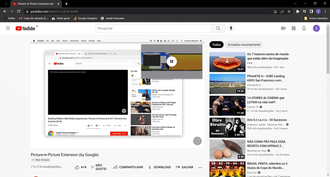 O Picture-in-Picture Extension é uma extensão desenvolvida pelo Google que permite assistir vídeos de qualquer site em uma janela flutuante. Uma vez instalada, basta clicar no ícone ou usar a tecla de atalho “Alt + P” para colocar o vídeo que você está assistindo em uma janela flutuante na tela do PC.
