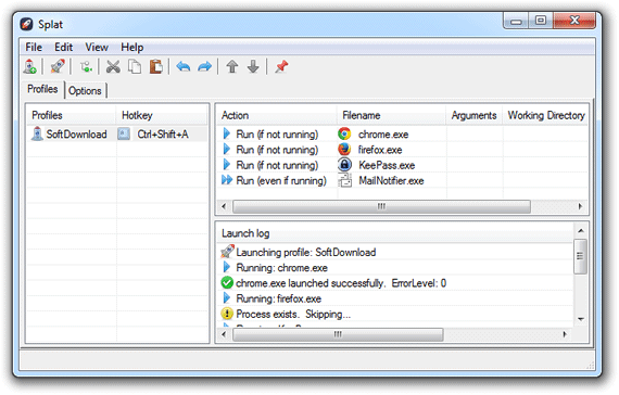 Splat é um programa que lhe permite abrir múltiplos programas simultaneamente através de tecla de atalho. Uma característica interessante do Splat é que você pode criar múltiplos perfis com diferentes “grupos de programas” e definir uma tecla de atalho para abrir rapidamente cada grupo de programa.