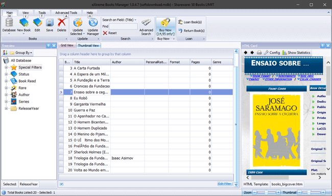 O eXtreme Books Manager é um programa que lhe permite organizar seus livros eletrônicos e livros de papel em uma única biblioteca. Você pode adicionar os ebooks salvos no computador e adicionar os livros de papel manualmente. A versão gratuita do programa permite cadastrar somente 50 livros.