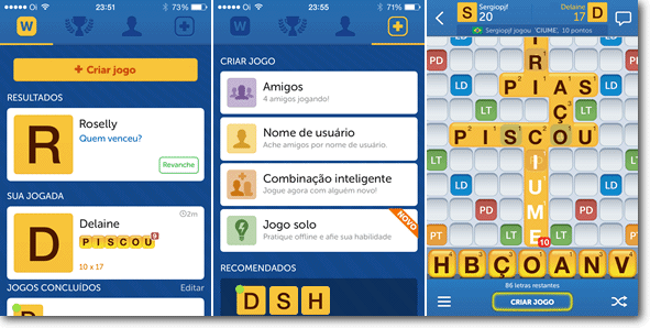 Palavras com Amigos é um jogo de palavras gratuito para Android baseado no jogo de tabuleiro Scrabble, muito popular nos EUA e conhecido no Brasil como palavras cruzadas. O seu objetivo no jogo é combinar as letras disponíveis no tabuleiro para formar novas palavras e somar pontos.