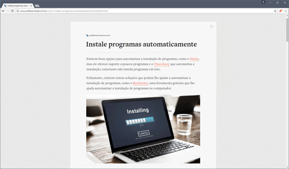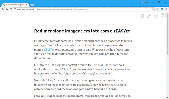 Just Read é uma extensão para Google Chrome que cria uma versão de leitura das páginas livre de distrações, mas que você também pode usar para imprimir a página. Basta criar a “versão de leitura” da página e, em seguida, utilizar a impressão do Chrome para imprimir a página apenas com o texto.