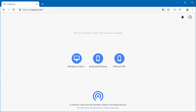 O Snapdrop é um serviço gratuito que permite transferir arquivos entre dispositivos da mesma rede Wi-Fi. Acesse o site do Snapdrop em ambos os dispositivos e ele irá detectar e exibir os dispositivos e tudo o que você precisará fazer é arrastar e soltar o arquivo sobre o ícone do dispositivo desejado.