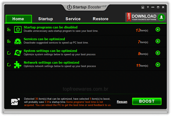 Anvi Startup Booster é um programa gratuito que acelera a inicialização do Windows com um único clique. Ele verifica a inicialização do sistema e encontra os programas, serviços e outros itens que podem ser desativados ou otimizados para reduzir o tempo de inicialização do Windows.