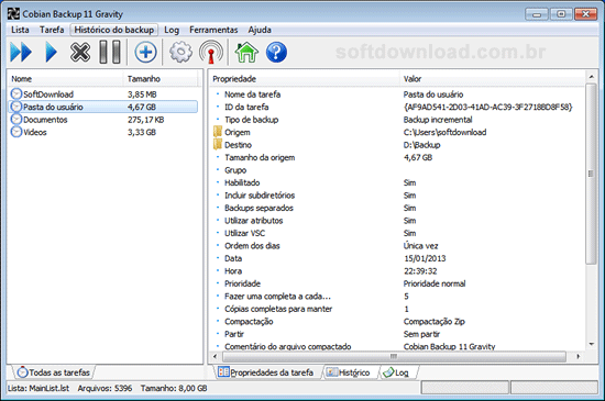 Cobian Backup é um programa gratuito para Windows que lhe permite fazer o backup de arquivos e pastas importantes para discos rígidos internos, externos e computador da rede. Ele oferece backup incremental, compactação e criptografia de arquivos e automação do backup usando agendamento.