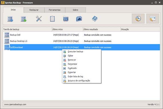 Iperius Backup Free é outro programa gratuito de backup para Windows capaz de fazer o backup de arquivos para discos rígidos e computadores da rede. Ele oferece backup incremental, compactação em ZIP, agendamento, notificação por e-mail, execução de programas, scripts externos e muito mais.