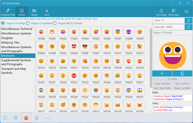 UI Character Map é uma versão moderna do mapa de caracteres do Windows. Ele permite que você selecione e copie rapidamente caracteres especiais, símbolos e emojis no computador. Os itens são organizados em categorias e você ainda pode criar uma lista com múltiplos itens, e copiar tudo junto.