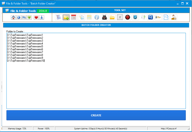O File & Folder Tools é um programa gratuito para Windows que oferece uma série de ferramentas para trabalhar com arquivos e pastas, incluindo um criador de pastas em lote. Basta você clicar na ferramenta “Batch Folder Creator”, digitar o nome das pastas e por último, clicar no botão “Create”.