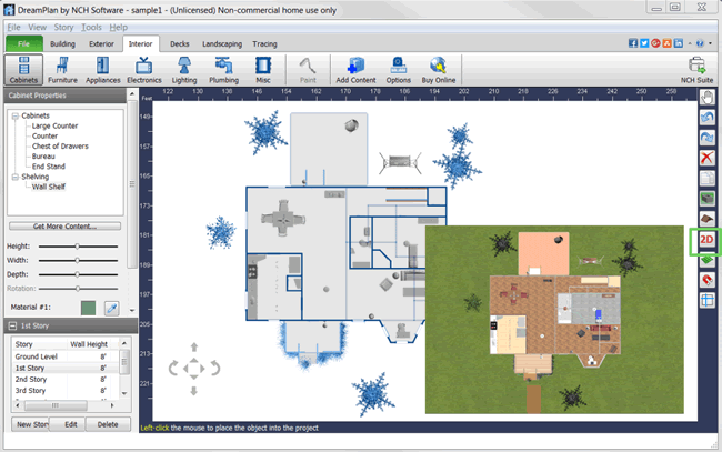 O DreamPlan é outro software gratuito de arquitetura que você pode usar para design de interiores e exteriores, paisagismo, etc. Uma das melhores características do software é a biblioteca de amostras pré-projetadas. Isso permite que você utilize uma amostra da biblioteca ou comece o projeto do zero.