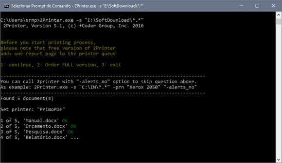 2Printer é mais um ótimo programa gratuito para imprimir arquivos em massa. Porém ele é baseado em linha de comando, você precisa usar comandos para imprimir os arquivos. Embora os comandos sejam simples, pode ser um empecilho para quem não tem familiaridade com o Prompt de Comando.