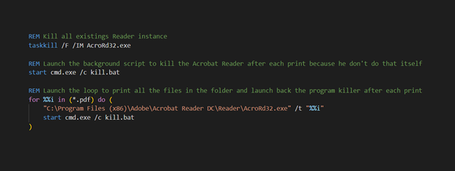 Batch PDF Printer é um script que permite imprimir documentos PDF em lote utilizando o Adobe PDF Reader. Baixe o arquivo ZIP, extraia-o para uma pasta, coloque os arquivos PDF que deseja imprimir na mesma pasta dos scripts, execute o arquivo print.bat e pronto, os arquivos PDF serão impressos.