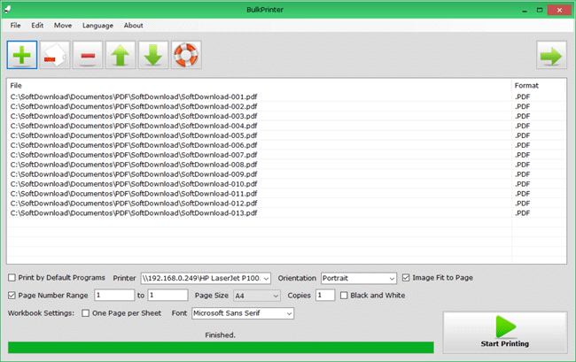 O BulkPrinter é um dos melhores programas gratuitos para imprimir arquivos em massa. Ele é muito fácil de usar, basta adicionar os arquivos e dar início ao processo de impressão. O programa suporta diversos tipos de arquivos, como documentos do Word, Excel, PowerPoint, PDF, TXT, imagens, etc.