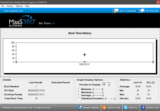 Maas360 Boot Analyzer é um programa gratuito que você pode usar para medir o tempo de boot do Windows em seu computador. Execute o programa, clique no menu “Action > Test Now” e defina o número de testes que deseja executar. Uma vez feito isso, ele irá reiniciar o PC e iniciar a medição.