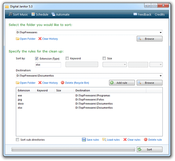 Digital Janitor é outro excelente programa gratuito que organiza automaticamente os seus arquivos classificando-os por tipo. Basta você indicar a pasta onde estão os arquivos que deseja organizar e escolher a pasta onde cada tipo de arquivo deve ser colocado para ele fazer a mágica pra você.