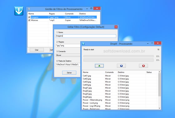 DropIt é o melhor programa para organizar arquivos automaticamente. Embora ele seja um pouco difícil de configurar, ele é muito eficiente. Basicamente, você precisa criar regras para organizar os arquivos. Uma vez feito isso, basta arrastar os arquivos para o DropIt para organizá-los em pastas.