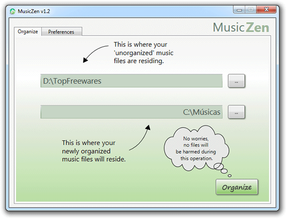 MusicZen é um programa gratuito especializado na organização de arquivos de áudio. Ele é capaz de organizar automaticamente todas as suas músicas em uma estrutura de pastas lógica e fácil de navegar, usando como referência as tags dos arquivos de áudio, como o nome do artista e álbum.