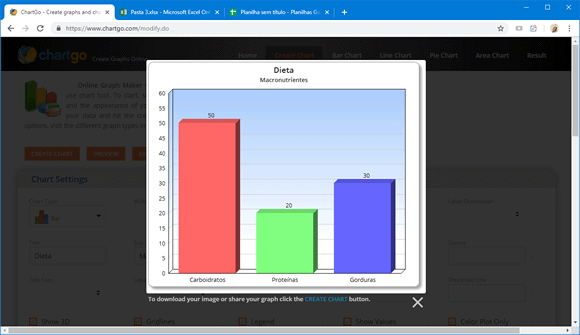 Embora você possa usar o Excel ou Power Point para criar gráficos, existem algumas opções online que permite criar gráficos de forma simples e rápida, sem precisar instalar nada em seu computador.