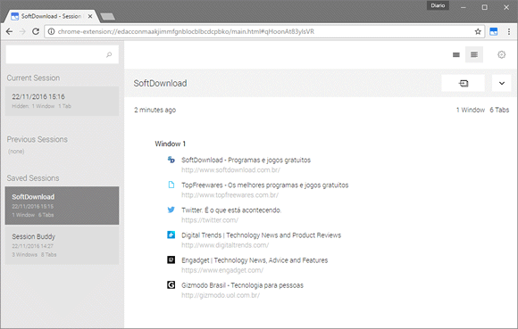 Session Buddy é uma extensão para o Google Chrome que permite salvar todas as guias abertas no navegador. Ao salvar as guias abertas, elas são fechadas no navegador e você pode restaurar a “sessão de navegação” mais tarde com todas as guias que estavam abertas no Google Chrome.