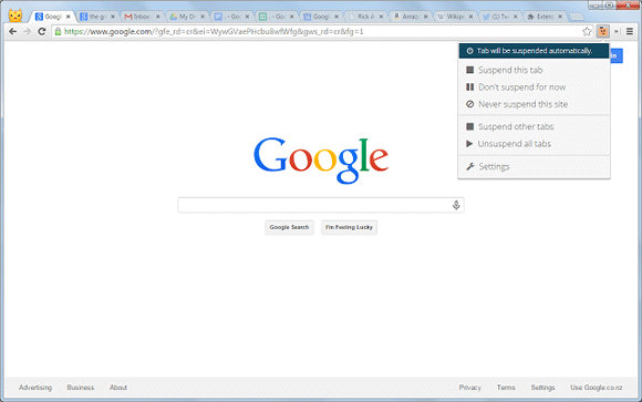 The Great Suspender é uma extensão para Google Chrome que reduz o consumo de memória do navegador, suspendendo automaticamente guias abertas, mas que estão inativas. Ela não é uma extensão que ajuda a organizar as guias abertas, o seu objetivo é reduzir o consumo de memória.