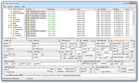 O Bulk Rename Utility é uma poderosa ferramenta gratuita que você pode usar para renomear os arquivos automaticamente. Ele é recomendado para usuários mais experientes, uma vez que sua interface oferece dezenas de opções para você para renomear os seus arquivos automaticamente.