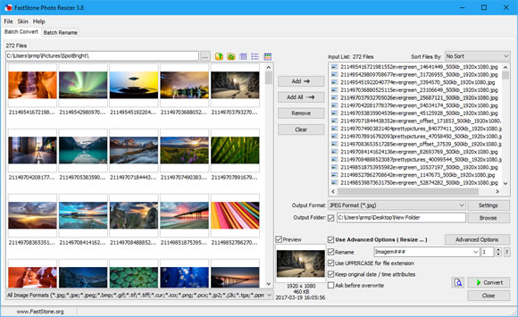 FastStone Photo Resizer é sem dúvida um dos melhores programas gratuitos para redimensionar imagens em lote. Basta você carregar as imagens que deseja redimensionar e selecionar a opção de redimensionamento nas opções avançadas para redimensionar todas as imagens adicionadas.